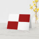 Two red rectangles and two white rectangles form a chequered pattern on this birthday card.