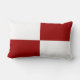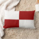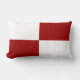 Stylish custom throw pillow features two red rectangles and two white rectangles in a chequered pattern.