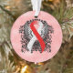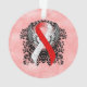 Red and white ribbon with angel wings and filigree pattern. The red and white ribbon is associated with Head and Neck Cancer Awareness in April, Oral Cancer Awareness in April, DVT Awareness, Squamous Cell Carcinoma Awareness, Aplastic Anaemia Awareness, Hereditary Hemmorrhagic Telangiectasia Awareness, and MDS and other Bone Marrow Diseases (AA & MDSIF Designation) Awareness.