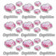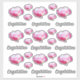 Twenty-one photos of a red, pink, and white rose bloom in two sizes are scattered across this sheet of stickers with nine "Congratulations" texts.  These stickers can be replaced with your own cutout photo of a flower to make personalised stickers or the words can be changed to your own message.  If you need help personalising, please contact me at jen@jenaleefamilystorykeeper.com