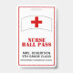 Red and White School Nurse Hall Pass Badge ID Badge