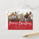 Red and white script merry Christmas multi photo H Holiday Postcard