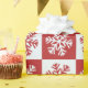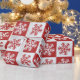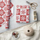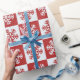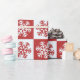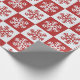 Wrapping paper with a seasonal design - repeating pattern of red and white snowflakes.