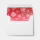 This personalised festive red and white snow flakes A2 envelope matches the wedding invitation shown below and is designed to replace the plain white envelopes that come with the RSVP card.