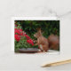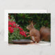 A beautiful snapshot of nature and its wonderful furry creatures. Featuring a red squirrel posing near some small red flowers.