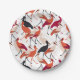 Red and White Stork Birds Seamless Pattern Paper Plate