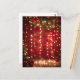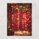 This is an image with a festive Christmas setting. It features a warm lighting arrangement with string lights that appear to be draped or hanging, some lights lying on a wooden surface, and several red ornaments or baubles. These decorations are commonly used during the holiday season to create a cozy and celebratory atmosphere. The backdrop has a blurry red texture, possibly a wall or curtain, which enhances the holiday color scheme. The overall mood is cozy and inviting, typical of holiday decor.