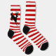 Red and white stripe socks with a black silhouette deer buck on each calf!