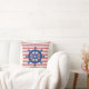 Red and White Stripe Nautical Throw Pillow with Blue Ship's Wheel