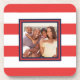 Red and White Stripe Pattern with Blue Border Photo Coaster.