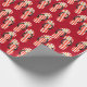Pair of red and white striped flip-flops with daisy flower on red background.