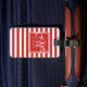 NewParkLane - Travel in style with this classic personalised luggage tag, with a red frame for your name and monogram, against a red and white striped background. Easy to customise in Zazzle with your own text for a personalised design. All text styles, colours & sizes can be modified to fit your needs.