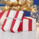 Red and white striped wrapping paper for a cute, modern and elegant nautical theme.