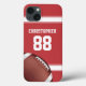 Ideal for the American football fan, grid iron player or football coach, a sports jersey style design in red with white stripes and customisable text for their name and number. A football is also featured as part of the design. Made in part from graphic licensed and © Graphics Factory.com