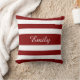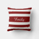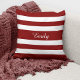 A stylish minimalist red and white bold striped pattern throw pillow with a customisable white name monogram printed in the centre. Easily personalise it with your name or monogram by changing the template name in the template field.