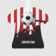 A unique personalised soccer sports design with a silhouette of football fans in black with a soccer ball on a red and white stripes background. Customise the text to add the name of the soccer player or football fan or add the text of your choice. If you would like this design in a different colour combination to match your own team colours, please contact us via our GiftsBonanza store.