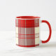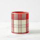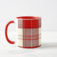 The design is a red and white tartan or plaid. Coffee mug with an updated version of an old design by Alma Wad. Perfect for a get-together with the family. Now you can add a monogram, name, brand, etc., to make it uniquely yours.