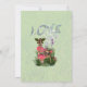 Red and white toadstool fairytale stories in a dreamy mushroom valley where many fantasy creatures live for a new baby arrival card