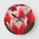 Red and White Tulips Round Clock