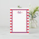 These preppy monogrammed note cards feature nautical red and white stripes with a border of navy blue. Personalise the matching red and blue monogram with your choice of name and initial.