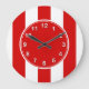 Red and White XL Stripes Pattern Large Clock