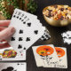 Bright red, golden yellow, and one white flower are superimposed against a brilliant orange sun on a tan background. Simple, modern, minimalist, and very beautiful deck of cards. Personalise with your initials in the bottom right corner.
