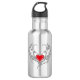 Artistically painted red heart with angel wings grey, decorated with black smooth contour.