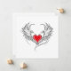Artistically painted red heart with angel wings grey, decorated with black smooth contour.