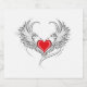 Artistically painted red heart with angel wings grey, decorated with black smooth contour.