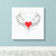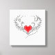 Artistically painted red heart with angel wings grey, decorated with black smooth contour.
