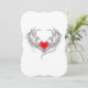 Artistically painted red heart with angel wings grey, decorated with black smooth contour.