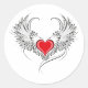 Artistically painted red heart with angel wings grey, decorated with black smooth contour.