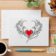Artistically painted red heart with angel wings grey, decorated with black smooth contour.
