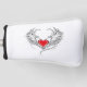 Artistically painted red heart with angel wings grey, decorated with black smooth contour.