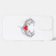 Artistically painted red heart with angel wings grey, decorated with black smooth contour.