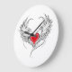 Artistically painted red heart with angel wings grey, decorated with black smooth contour.