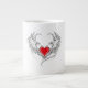 Artistically painted red heart with angel wings grey, decorated with black smooth contour.