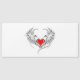 Artistically painted red heart with angel wings grey, decorated with black smooth contour.
