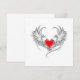 Artistically painted red heart with angel wings grey, decorated with black smooth contour.