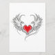 Artistically painted red heart with angel wings grey, decorated with black smooth contour.