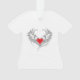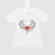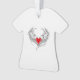 Artistically painted red heart with angel wings grey, decorated with black smooth contour.