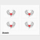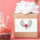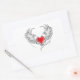 Artistically painted red heart with angel wings grey, decorated with black smooth contour.
