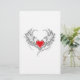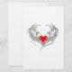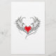 Artistically painted red heart with angel wings grey, decorated with black smooth contour.