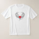Artistically painted red heart with angel wings grey, decorated with black smooth contour.