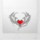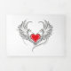 Artistically painted red heart with angel wings grey, decorated with black smooth contour.