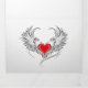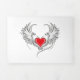 Artistically painted red heart with angel wings grey, decorated with black smooth contour.