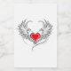 Artistically painted red heart with angel wings grey, decorated with black smooth contour.