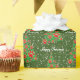 Red Animal Paw Silhouette Christmas Tree Green Wrapping Paper