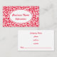 A fun red and pink leopard print decorates this professional business card. Customise this business card to suit your needs. Change the text, font size, etc...The design is from original art. Use this stylish business card for a bakery, consultant, boutique, fashion, clothing, alterations, decor, boutique, makeup artist, cosmetologist, candy, hair stylist, salon, spa, nail salon, home decor, interior design, musician, etc...