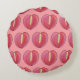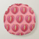 Seamless pattern of red Anthurium flower on round throw pillow. Floral design pillow to add the beauty of nature's bloom to your chair, couch, sofa, bedroom or living room.